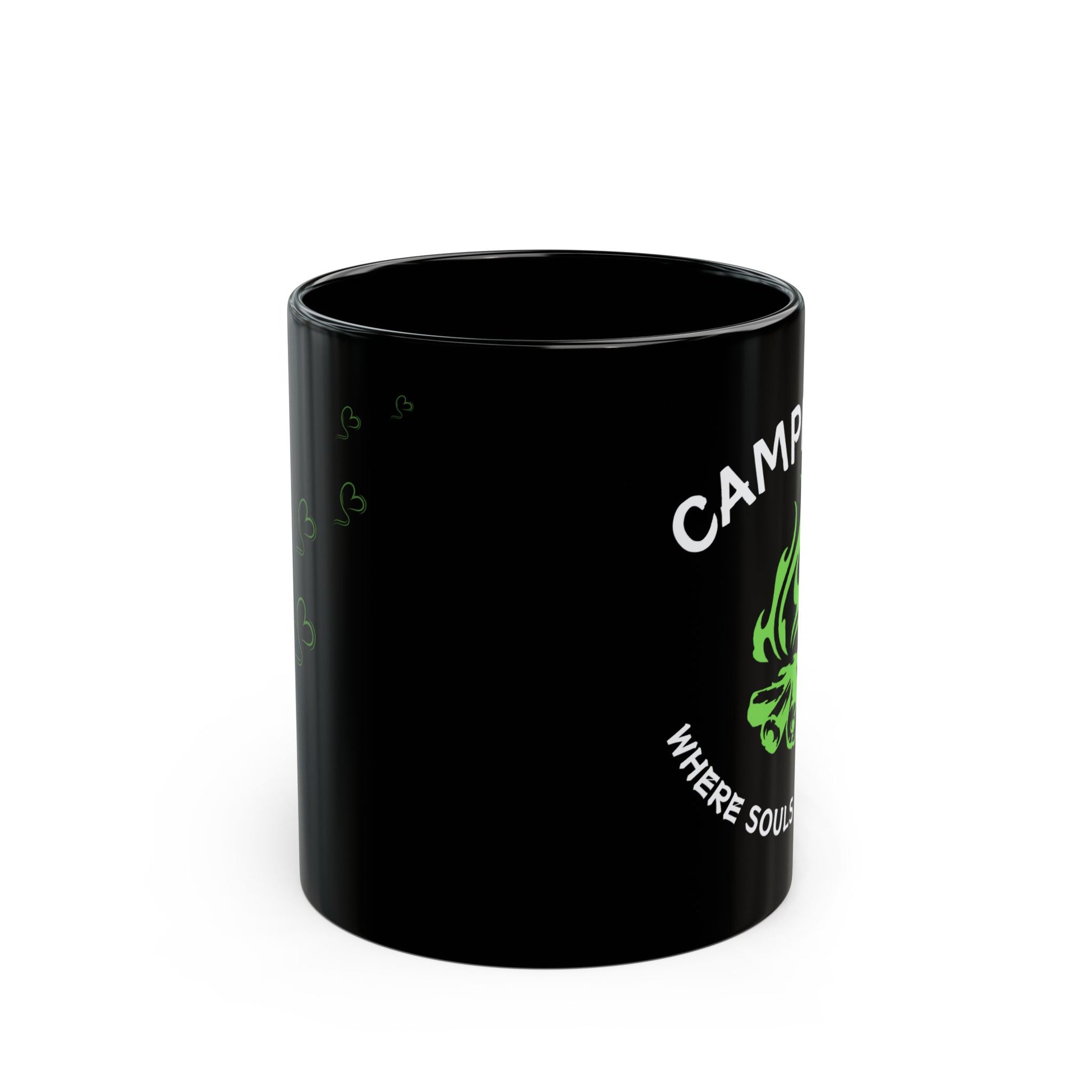 Campfire Soul Healing Black Mug | Green Campfire Design | Ceramic Mug | 11 oz