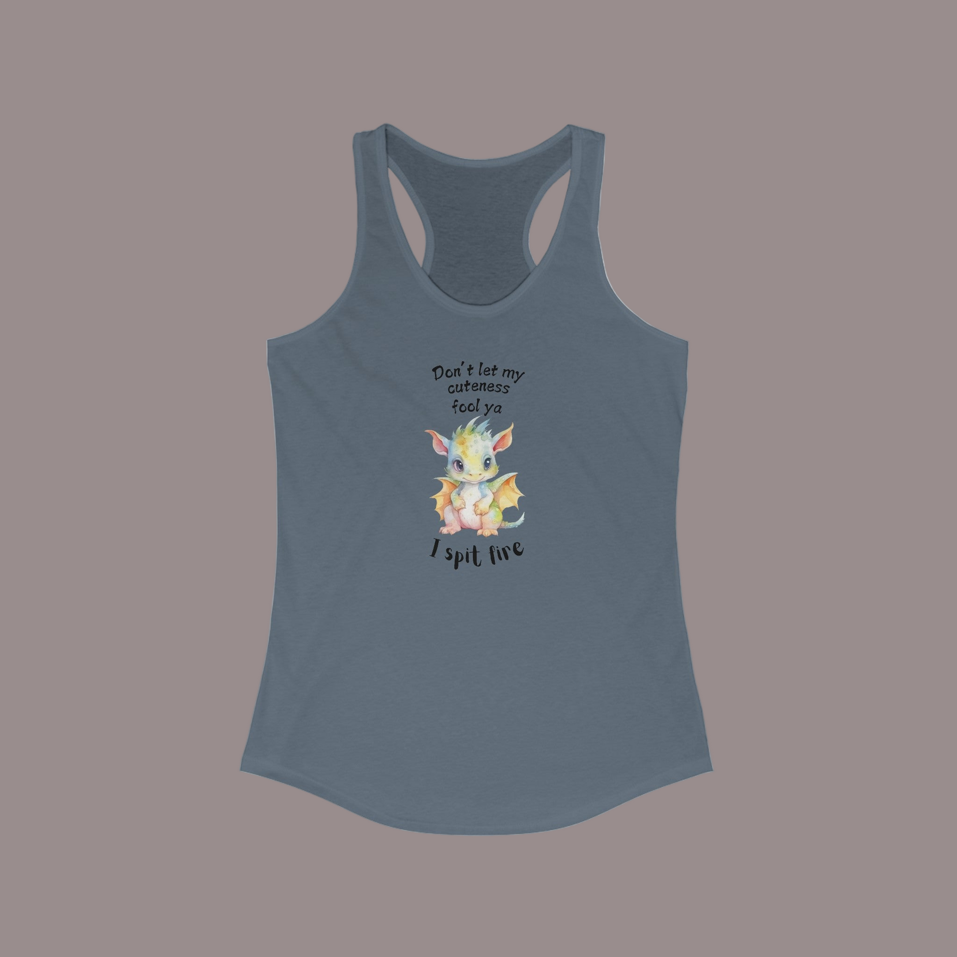 Don’t Let My Cuteness Fool You | Baby Dragon in Soft Pastels | Women's Ideal Racerback Tank