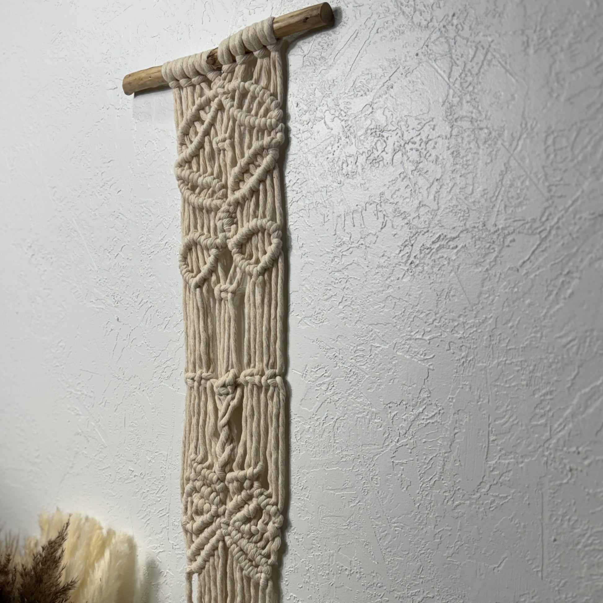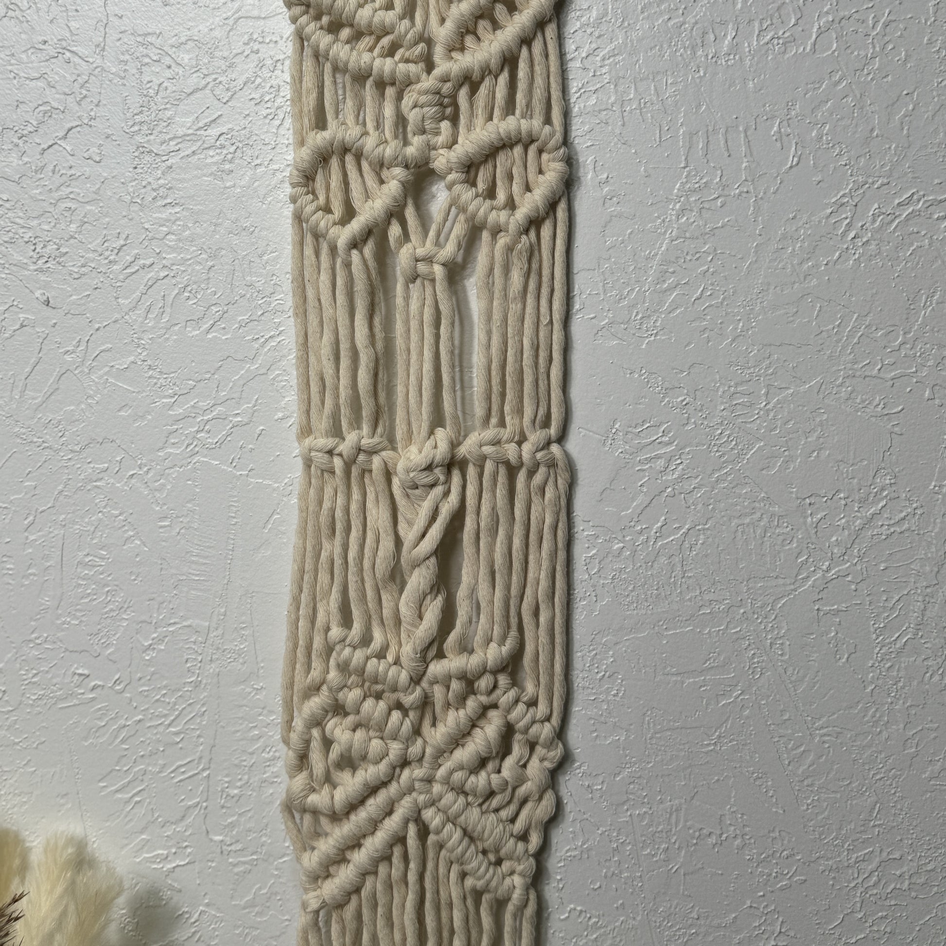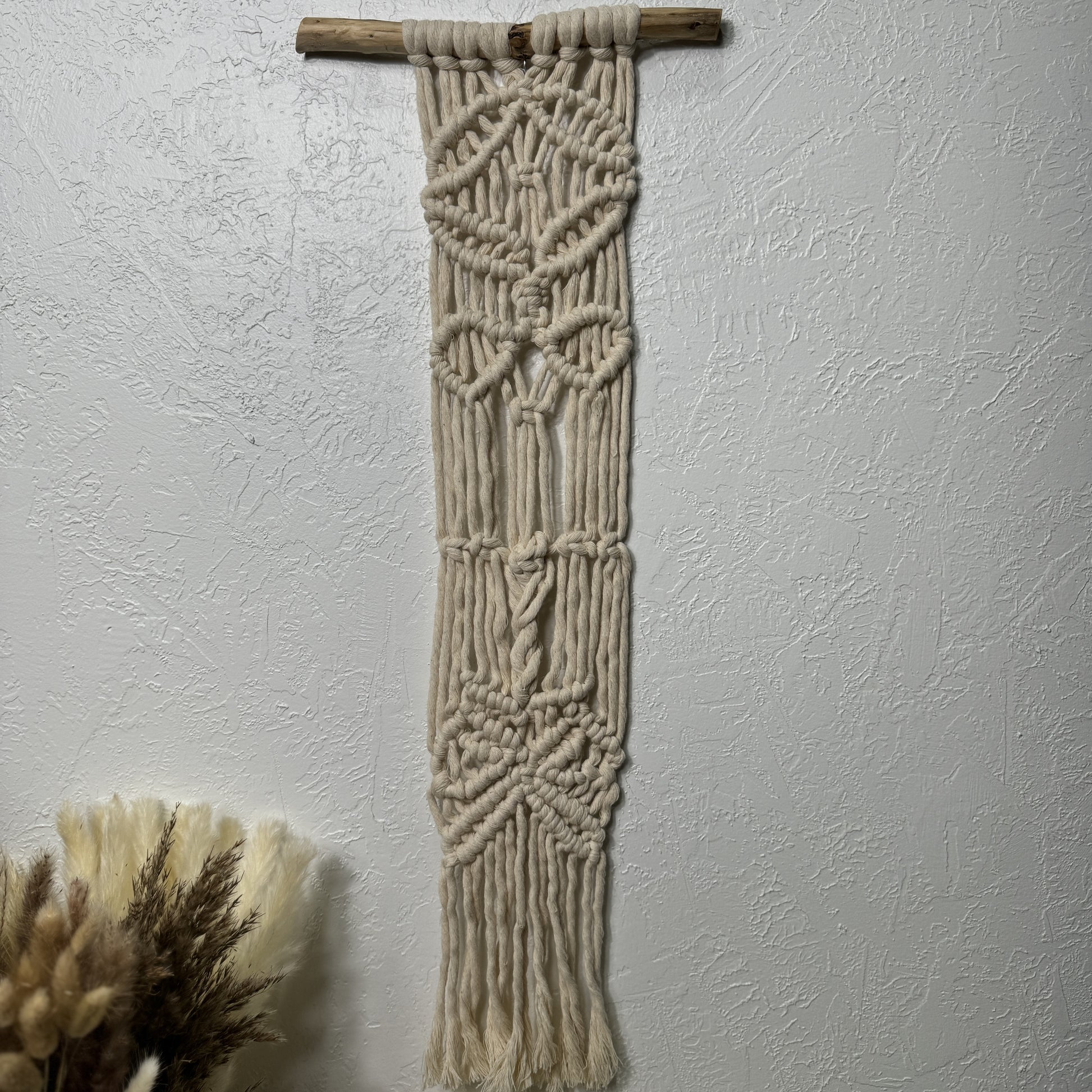 Elevate your wall decor with this delightful macrame piece - perfect for filling that narrow long space! Featuring a charming floral and butterfly pattern, this design is simple yet captivating. Whether adding to your own collection or gifting it to someone special, this macrame will surely bring joy and beauty to any room. Get yours now!