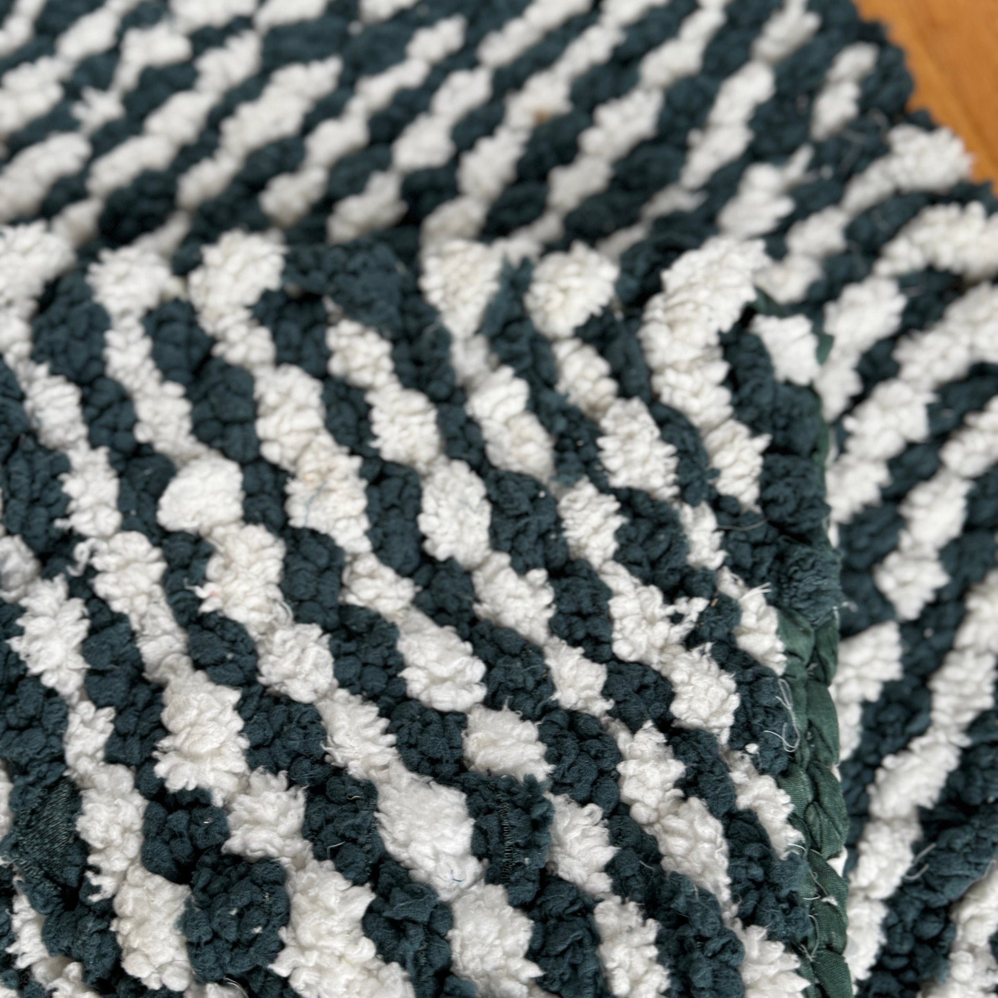 Rug | Reversible | Dark Green and White Stripe Pattern